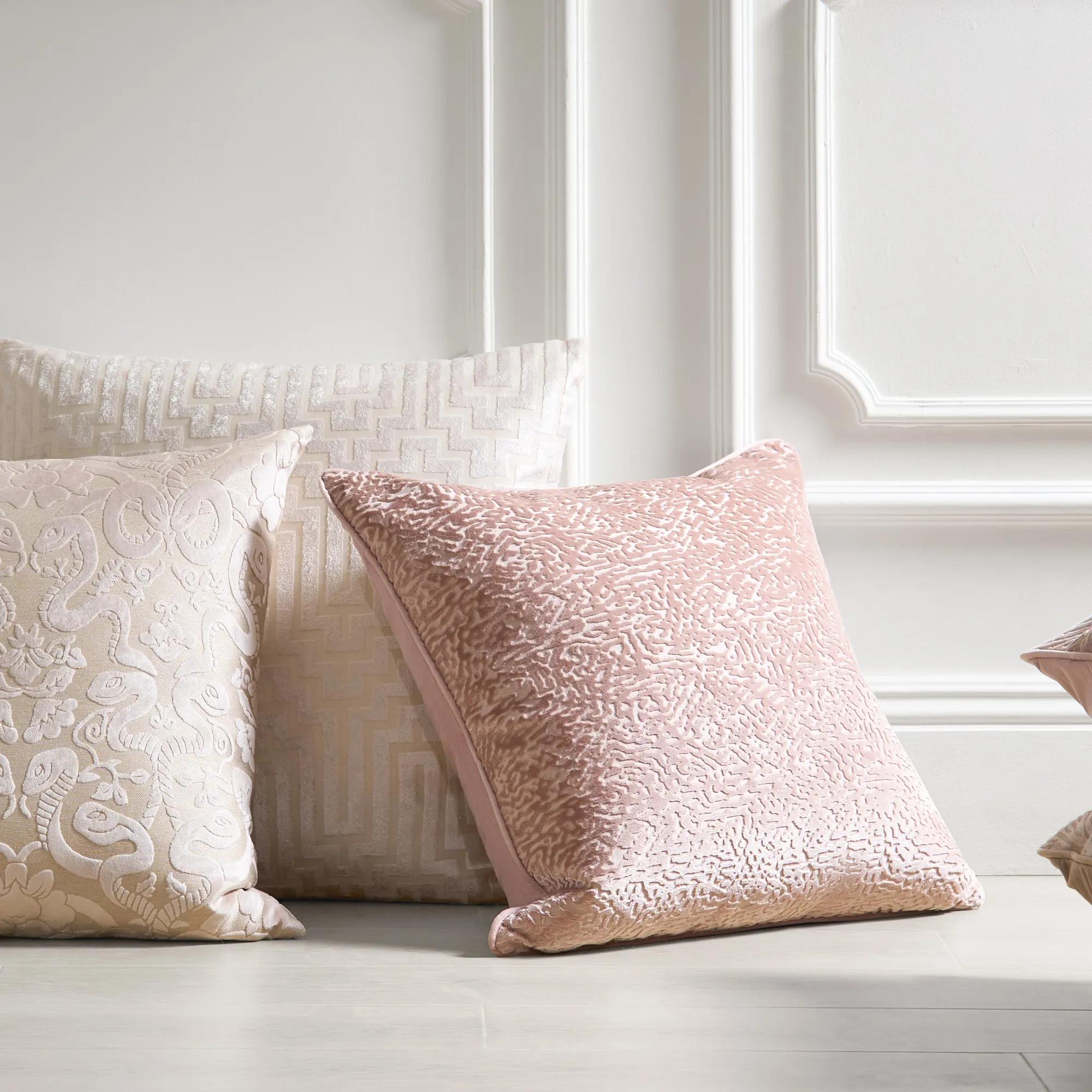 Our stylish Spotted accent pillow compliments any sofa or bed, featuring a cut-velvet abstract design for dimensional color and softness. Pairs well with prints and textures for exotic flair. Removable cover with hidden zipper closure. Plush feather down Insert included.