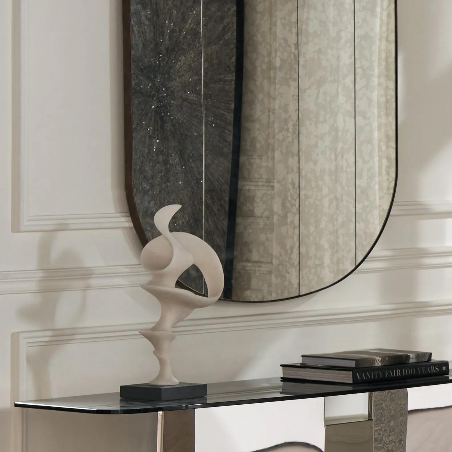 With its captivating curves and architectural planes, the Striato Sculpture blends primitive allure with modern artistry. Perched on a dark gray pedestal, it offers a dramatic focal point that elevates your decor with its sculptural elegance.