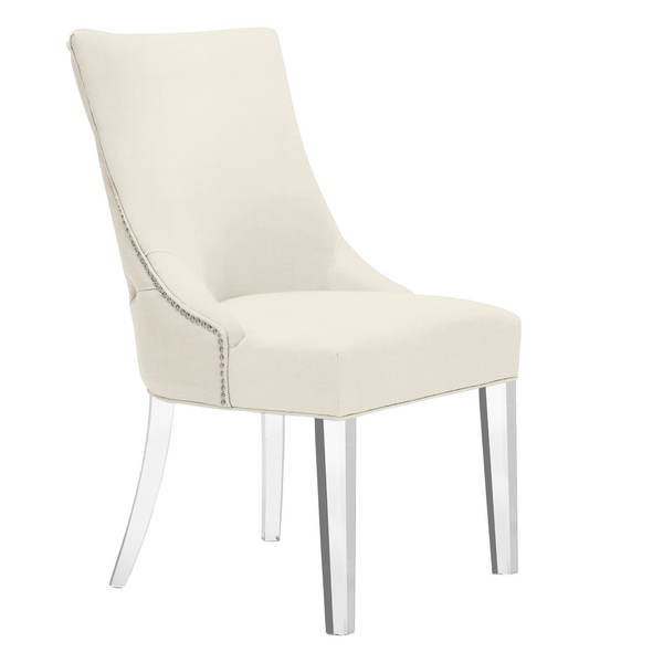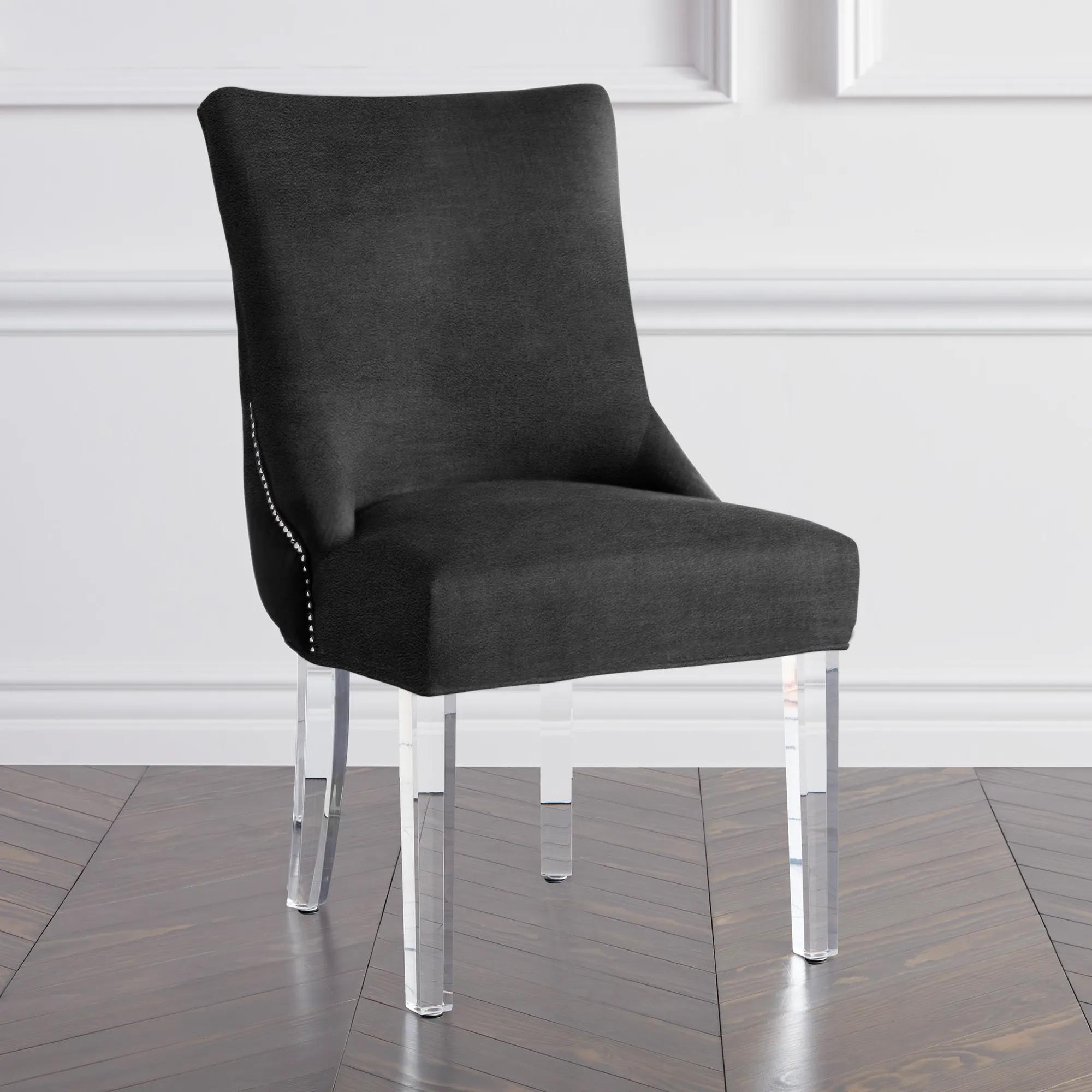 Featuring diamond shaped button tufting around the back, our Versailles chair elevate the style of any room. Shown in Royale Plush Velvet Gunmetal with bright nickel nailheads.