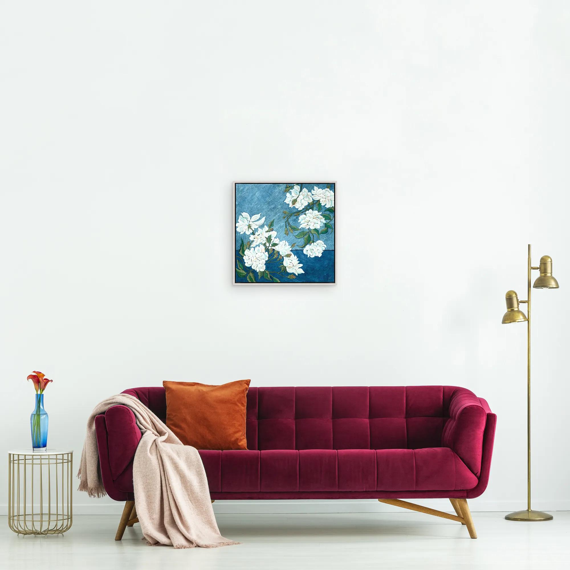 • Set in a white floater frame.